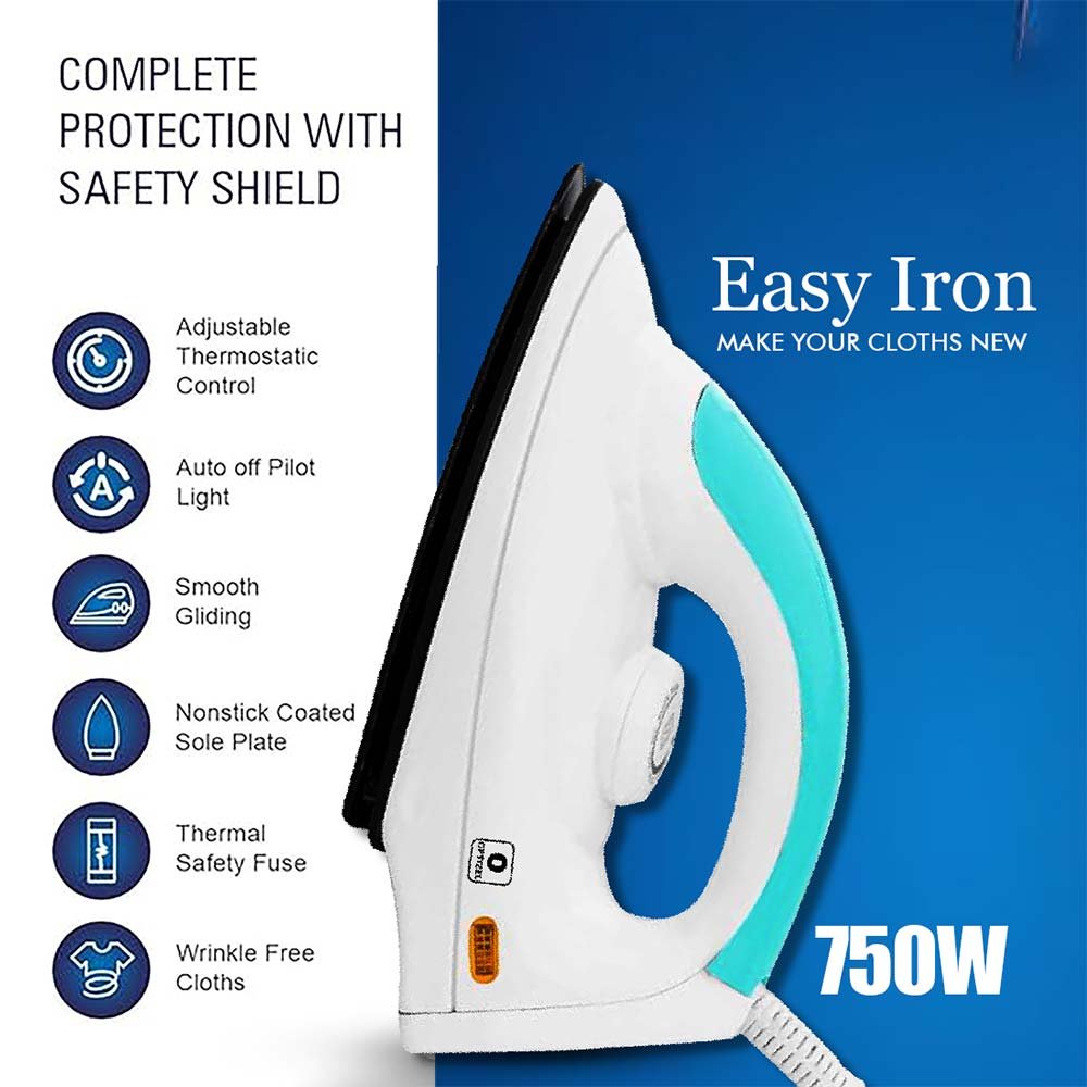 • OPTIZEL NAIC Dry Iron (Blue) I Stylish Design I 750w I Light Weight I 2 Year Warranty I Free Delivery